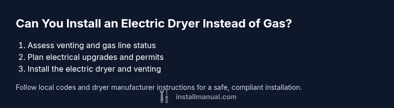The central question can you install an electric dryer instead of gas is common among homeowners planning a remodel, a partial upgrade, or a move to a different energy source. The short answer is often no, not without a comprehensive assessment of your home’s ventilation, electrical system, and gas infrastructure. The Install Manual team has found that the feasibility hinges on three core pillars: venting and exhaust paths, electrical service capacity, and the state of the existing gas supply. For many households, replacing a gas dryer with an electric model is possible only after those systems are brought into compliance with local code and manufacturer requirements. As you plan, prioritize safety, structural compatibility, and future maintenance, and treat this as a multi-discipline project rather than a simple appliance swap. The phrase can you install an electric dryer instead of gas should be understood as a question about feasibility, not a guaranteed shortcut. If you’re unsure, scheduling a professional inspection early on can save time and prevent costly mistakes.
