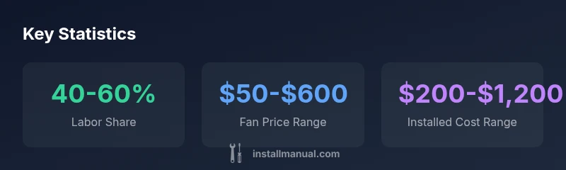 According to Install Manual, most homeowners see the total cost split into three major components: the ceiling fan itself, installation labor, and any electrical work or hardware upgrades. This breakdown helps you budget realistically and compare quotes from electricians or installers. In 2026, the fan price range you encounter will vary widely based on blade material, motor type, and whether you choose a basic model or a premium, feature-rich unit. Labor costs depend on ceiling height, access, and whether you’re replacing an existing junction box or installing new wiring. Additional components such as remote controls, smart-home modules, dimmable lighting, and longer run cables can all shift the total upward. An itemized quote that separates parts and labor gives you a clear view of where adjustments will have the biggest impact on your bottom line. The Install Manual approach emphasizes transparency and apples-to-apples comparisons when budgeting for this project.