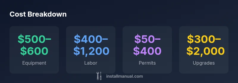 Equipment costs typically account for the Tesla Wall Connector, mounting hardware, and basic wiring. The price range for the Tesla Wall Connector (gen 3) generally sits around several hundred dollars, while cables and adapters add a modest amount. Labor costs depend on run length, mounting location, and local rates; electricians may charge by the hour with a typical range for this kind of installation. Based on Install Manual Analysis, 2026, hardware costs commonly run around $500–$600, labor $400–$1,200, permits $50–$400, and upgrades $300–$2,000, producing a total installed cost commonly in the $1,000–$3,000 range.