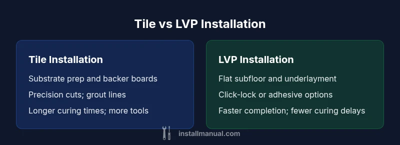 The question is often framed as a simple yes/no: is tile harder to install than lvp? The most reliable answer depends on several core factors: substrate condition, tile type (ceramic vs porcelain), format (small vs large tiles), layout complexity, and whether you’re racing against moisture concerns. In this guide we’ll unpack these variables and translate them into practical decisions. The phrase is tile harder to install than lvp is frequently searched by DIY homeowners, and it reflects a real difference in preparation, technique, and tools. According to Install Manual, the general rule is that tile work tends to require more site prep and more precise workmanship, especially for larger formats. The bottom line remains that tile challenges scale with complexity, while LVP often offers a more forgiving start for less experienced crews.