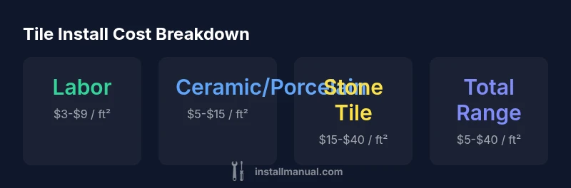 Tile floor install cost is driven by a combination of material choice, room geometry, and prep work. The Install Manual team finds that tile type (ceramic, porcelain, or natural stone) largely sets material costs, while labor scales with layout complexity and surface prep. If you’re replacing old flooring, demolition time and disposal fees can add to the bill. Finally, regional labor rates and supplier availability influence the final total, so quotes can vary considerably by location.
