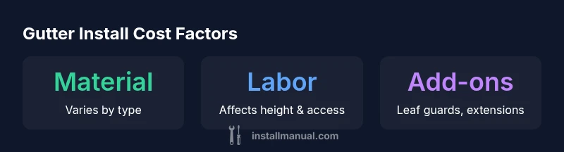 Gutter install costs are determined by several interrelated factors. For homeowners evaluating quotes, the first step is recognizing that price is not a single number; it’s a combination of material selection, the type of system, and the scope of work. At a high level, material choice drives the largest portion of the expense, followed by labor and the complexity of installation. Install Manual Analysis, 2026 indicates that regional pricing and contractor practices can swing the total by a wide margin, so it’s essential to compare apples to apples when evaluating bids. In practice, you’ll want to distinguish between installed costs (materials plus labor) and materials-only estimates (for planning purposes). Always confirm whether quotes include downspouts, outlets, splash blocks, and any improvement work on the fascia or roof edge. This way, you’ll have a realistic baseline for budgeting and avoid surprise charges. The cost for gutter install, while varying, remains predictable when you break it down into these elements, and a clear scope helps you compare quotes more effectively.