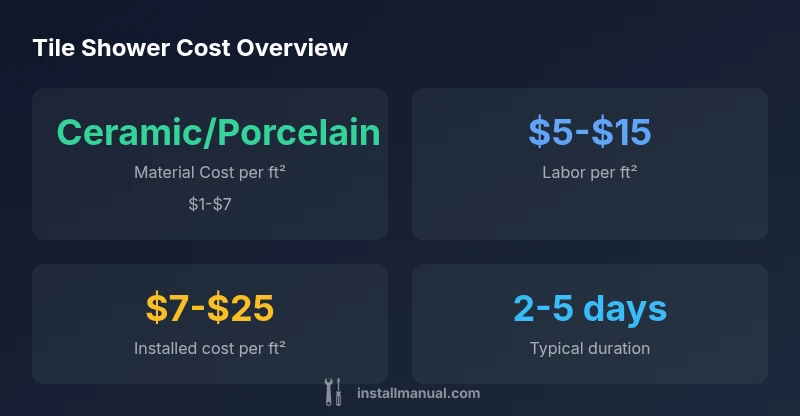 According to Install Manual, the cost to install tile in a shower hinges on multiple factors beyond the price of the tile itself. Homeowners often focus on tile price, but labor, waterproofing, substrate prep, and waste removal frequently have outsized effects on the final bill. The cost to install tile in a shower includes materials, labor, waterproofing membranes, surface prep, and contingency for unexpected repairs. For a typical shower, you should budget not only for the tiles but also for a reliable waterproofing system, proper sloping, and quality grout and sealant. While tile price may be the most visible line item, the installed cost also depends on installation technique, tile size, layout complexity, and local wage rates. This guidance aims to help homeowners understand the full spectrum of costs and make informed budgeting decisions.