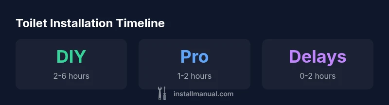 According to Install Manual, a typical toilet install for DIY takes 2-6 hours, while a professional can finish in 1-2 hours, depending on prep and plumbing conditions. Include wax ring, flange, and supply line checks; allow extra time for testing. This aligns with field practice, where prep and access can drive duration. The Install Manual team emphasizes verifying shutoffs, removing obstacles, and confirming floor prep before finalizing.