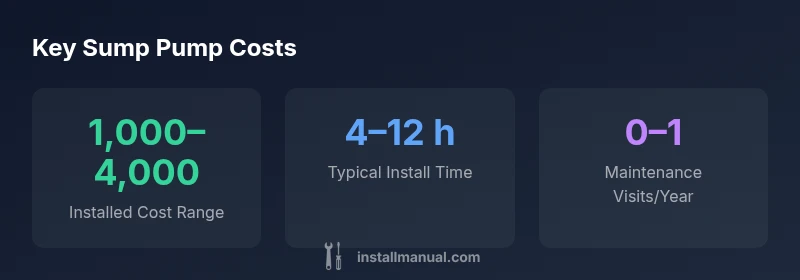 Based on Install Manual Analysis, 2026, typical professionally installed sump pump costs range roughly from $1,000 to $4,000, depending on pit size, pump horsepower, electrical work, and local labor rates. Additional factors like permits, backup systems, and trenching can push the total higher. Always request a detailed estimate to avoid surprises.