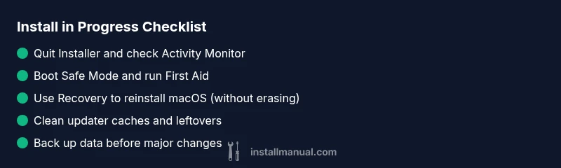 According to Install Manual, the 'install in progress' state on macOS can stall due to a few common causes: a corrupted installer package, insufficient disk space, or background processes that conflict with the updater. If you're facing this issue and wondering how to get rid of install in progress on mac, you’re not alone. Quick actions now can prevent longer downtime and protect your data. The reader should understand that stalling is usually due to a controllable clash between the installer and system activity, not a mysterious hardware fault. Recognizing this helps you apply the right fix quickly, reducing risk to personal files. This guide remains practical and action-oriented, so you can proceed with confidence.