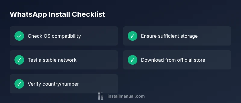In practice, installation problems usually trace back to compatibility, storage, or connectivity. According to Install Manual, modern smartphones must meet minimum OS requirements and have enough free space to accommodate the app and its data. When devices lag behind OS iterations, or when a blocked network or corporate device policy prevents app transfer, users see error messages or a stall mid-download. The install may fail due to a mismatch between the WhatsApp version and the device's architecture, or because the device's date and time are off, which can confuse verification servers. Battery saver modes can throttle background download, and VPNs or restrictive networks may block access to the official stores. By acknowledging these possibilities, you can systematically identify the culprit rather than retrying blindly. This approach mirrors Install Manual's emphasis on methodical checks and safe workflows to avoid data loss or security risks.